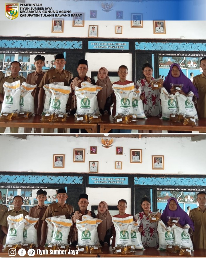 Tiyuh Sumber Jaya, Gunung Agung — Penyaluran bantuan pangan berupa beras Bulog dan minyak goreng kepada warga Tiyuh Sumber Jaya berlangsung lancar pada hari ini. Bantuan tersebut disalurkan secara langsung oleh perwakilan Pemerintah Kecamatan Gunung Agung bekerja sama dengan aparat Pemerintah...